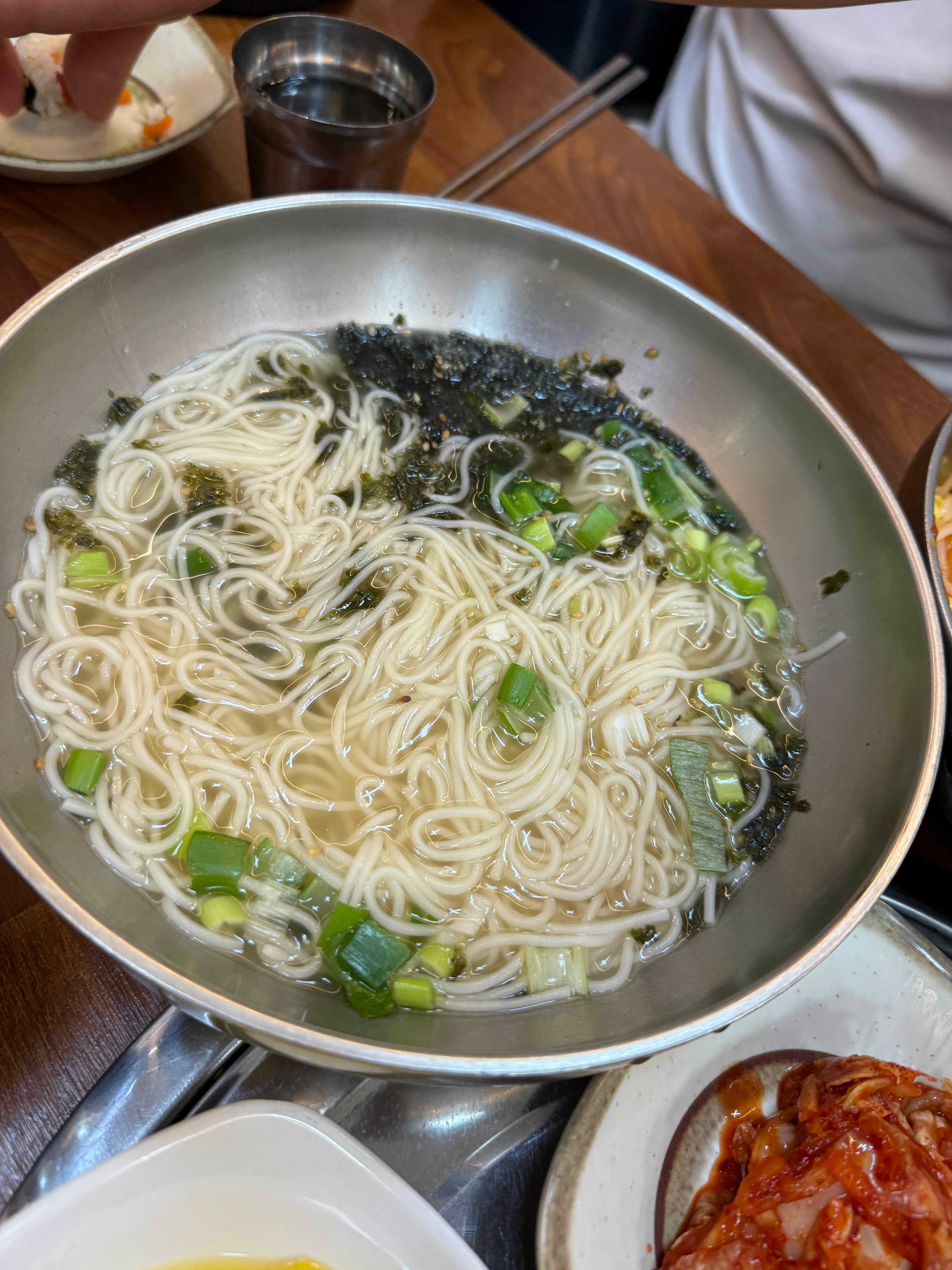 얼마후 주문한 음식들이 바로 나왔어요! 주문 들어가면 바로바로 만들어주셔서 따뜻하게 먹을 수 있어서 더 맛있었어요 심지어 쿤이는 저 국수 한그릇을 다 먹었어요 ㅋㅋㅋㅋ 가격은 뽀로로 파크의 1/3 이지만 맛은 뽀로로 파크보다 30배 맛잇었어요 ㅋㅋㅋㅋ