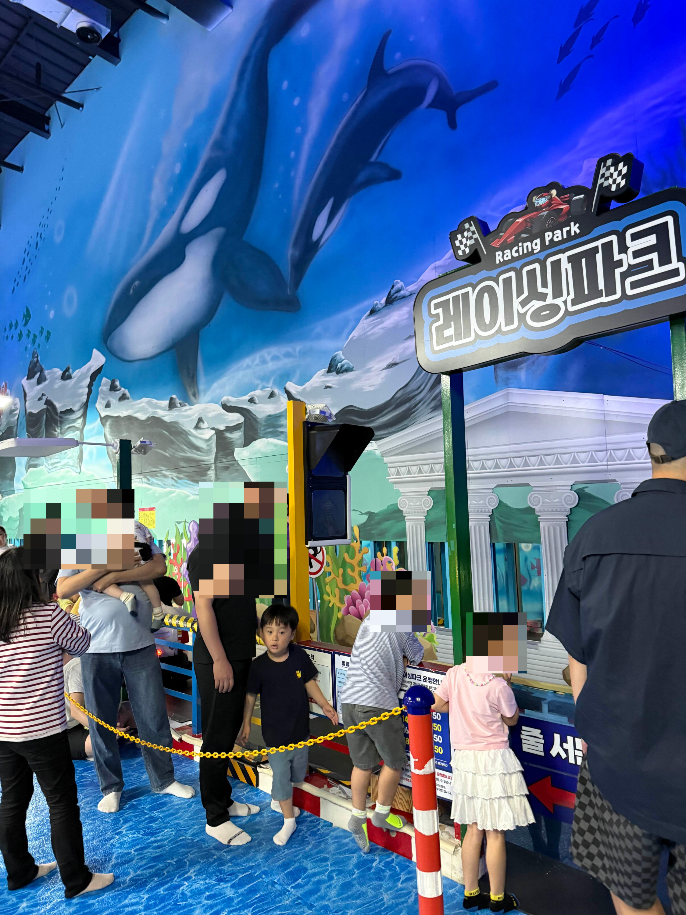 쿤이가 젤 좋아하는 자동차도 타려고 줄 섰어요 레이싱파크존인데 여긴 인기가 제일 많아요 그래서 줄도 제일 길어요 ㅋㅋㅋㅋㅋ 그래도 이전보다 사람들이 없어서 금방 금방 빠졌어요