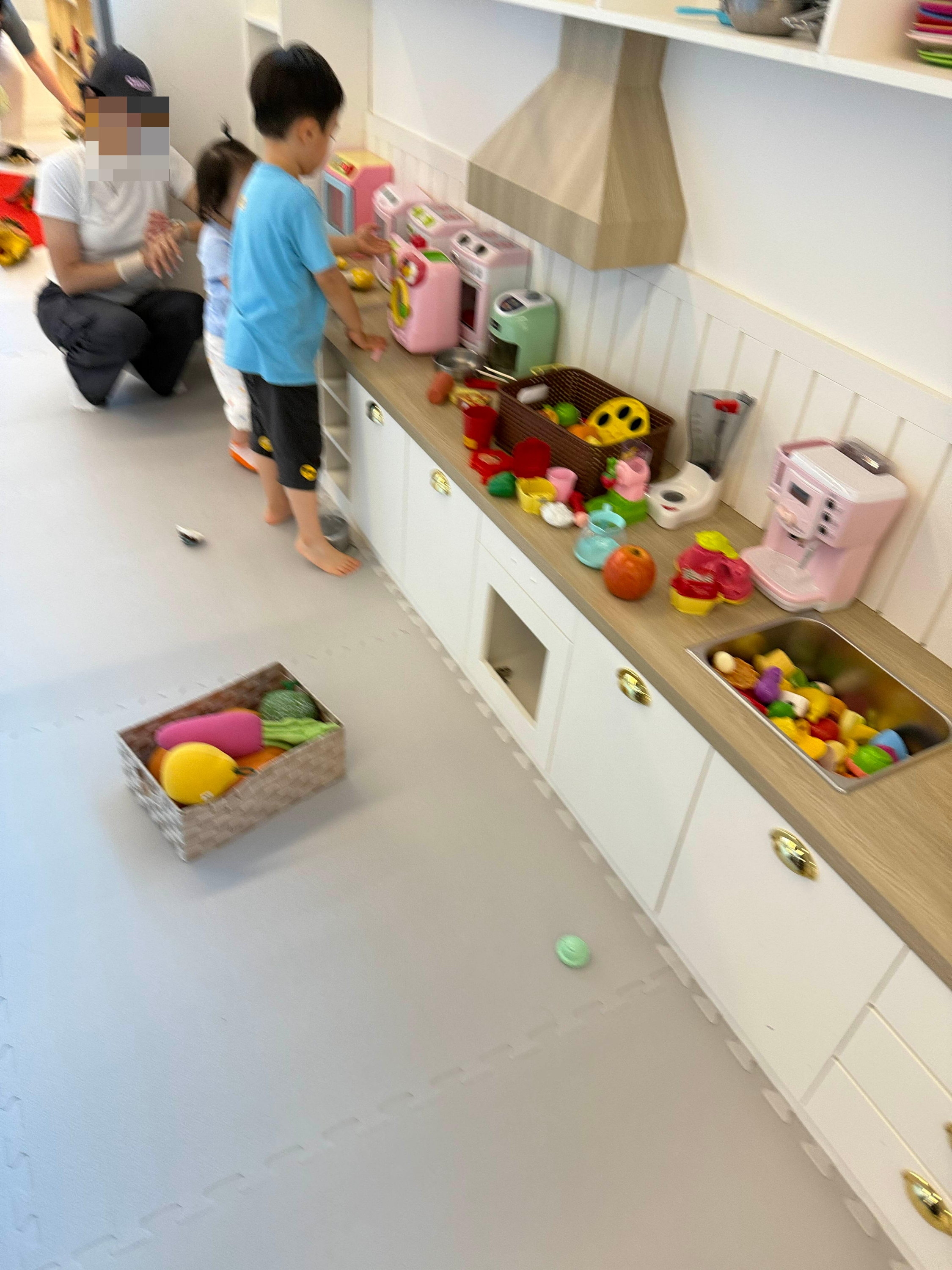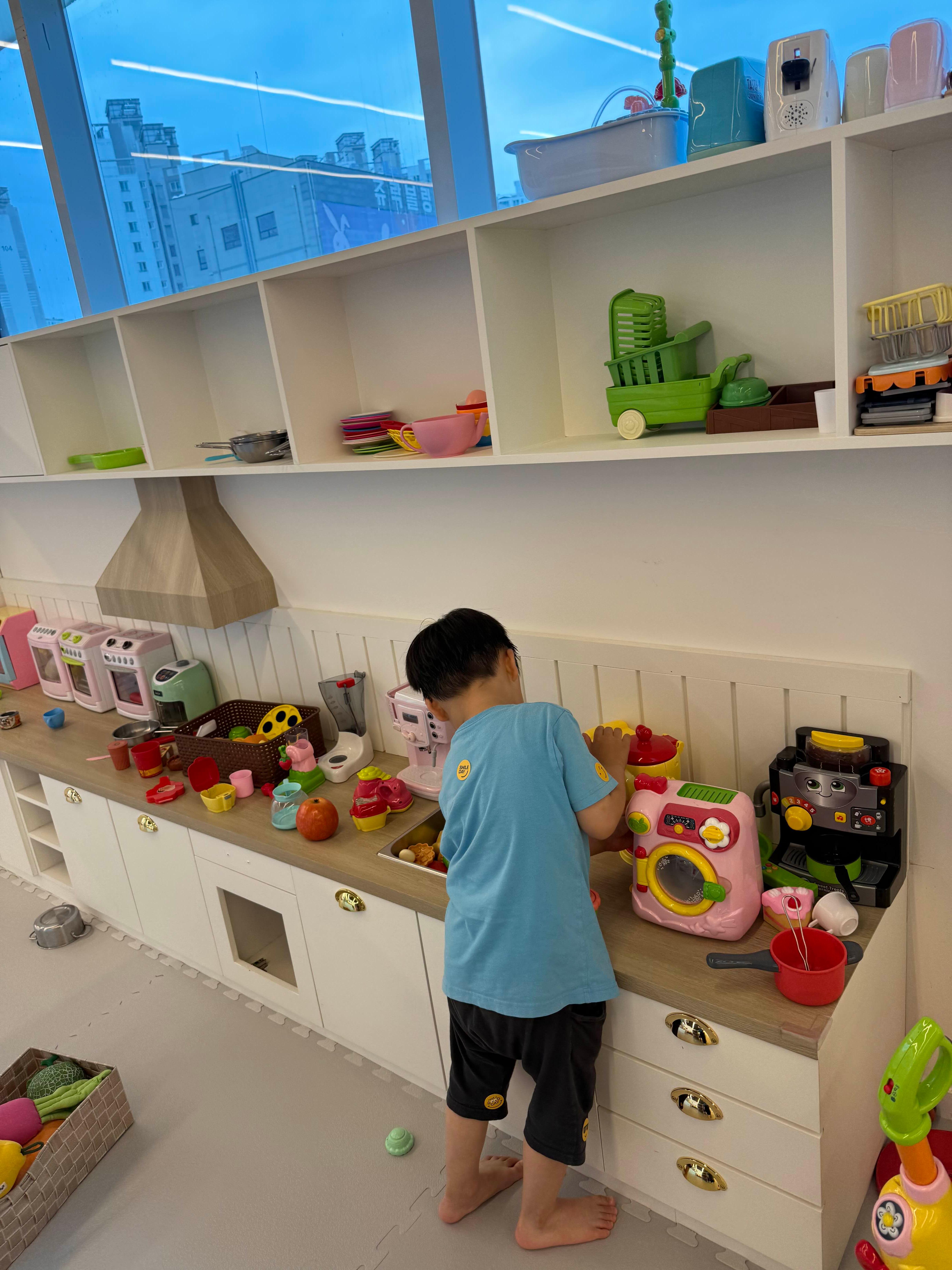 요즘엔 역할놀이에 빠져서 그런지 예전엔 안가던 부엌놀이하는 키친에도 가서 한참 놀았어요