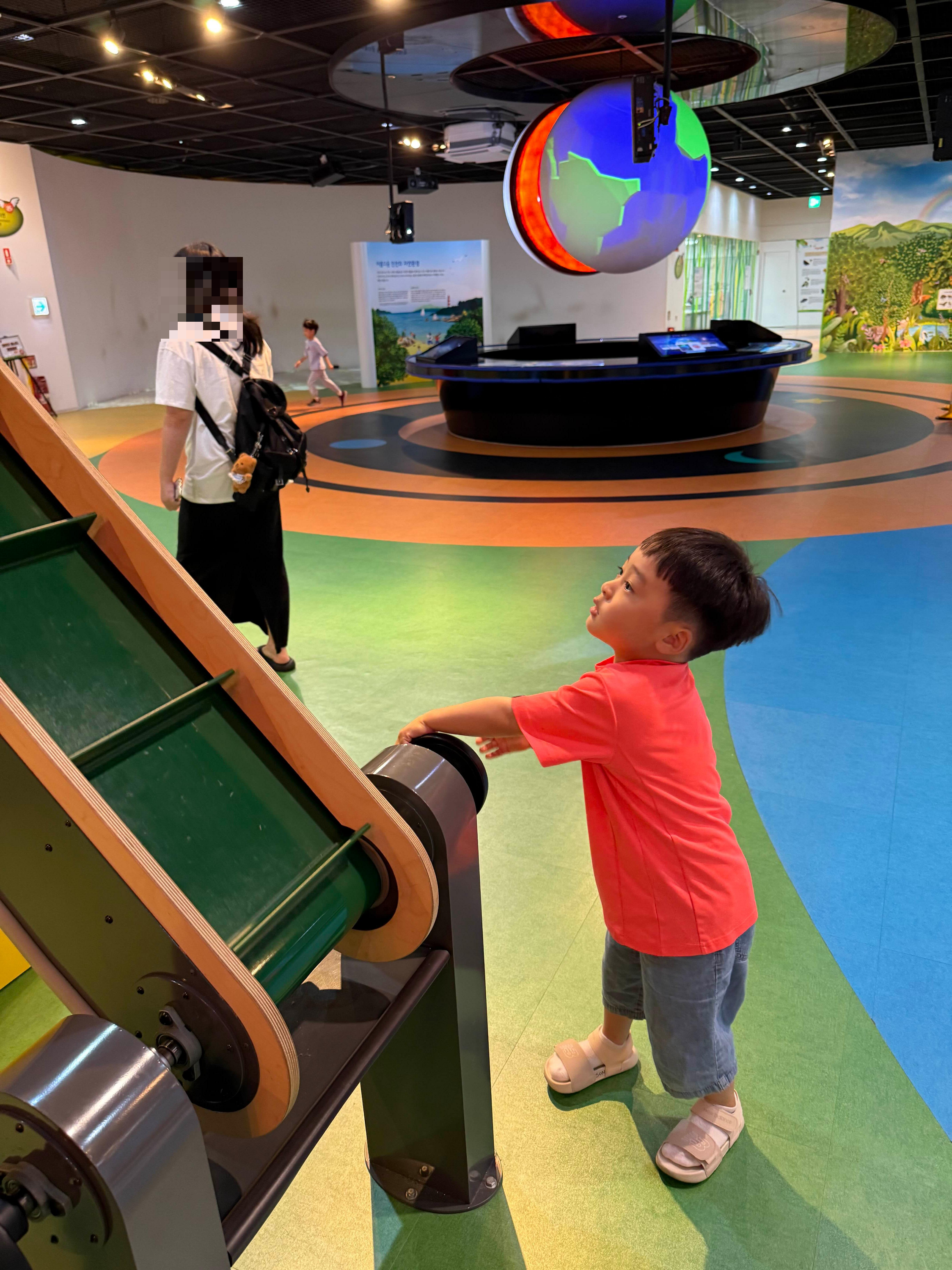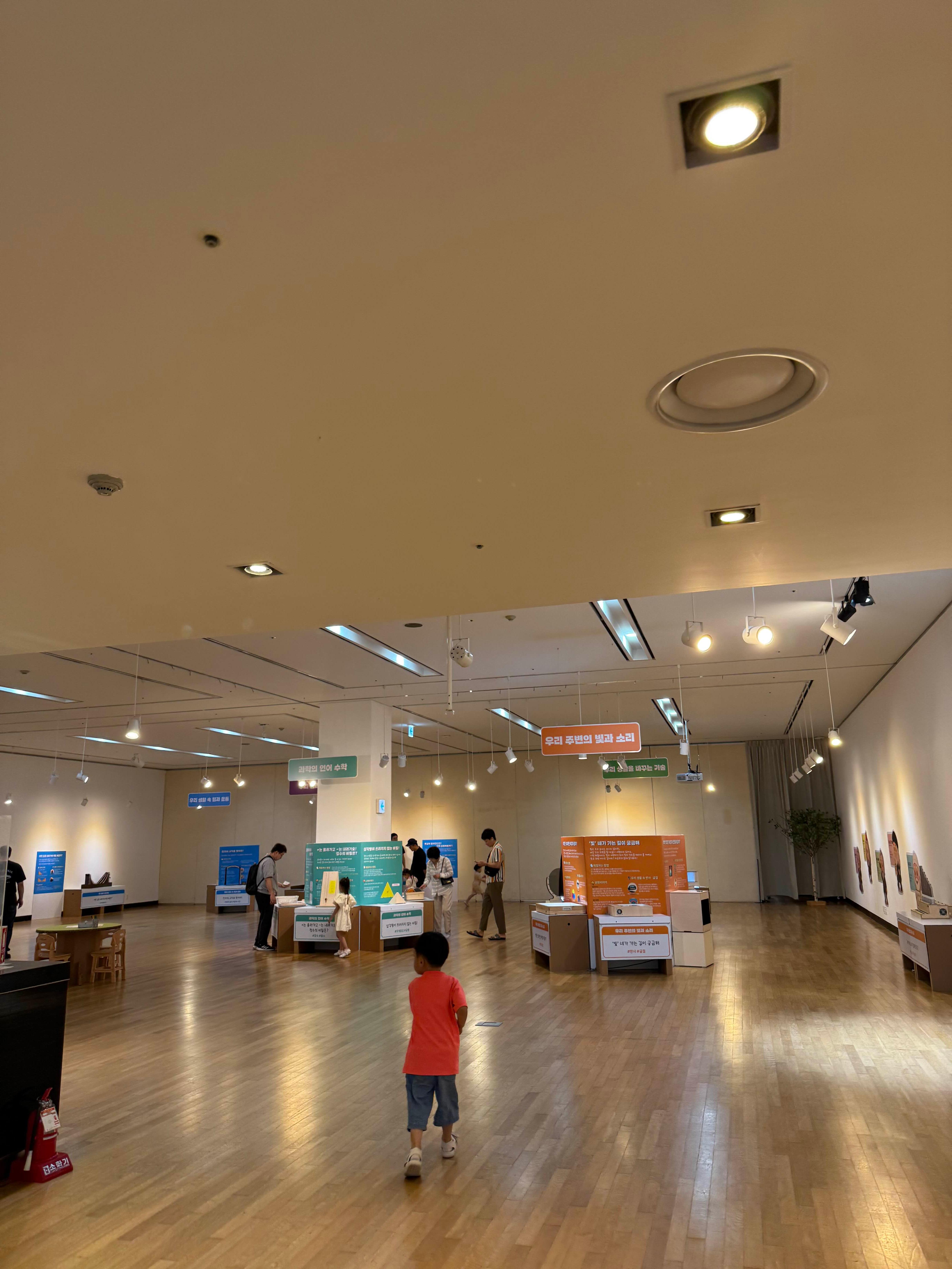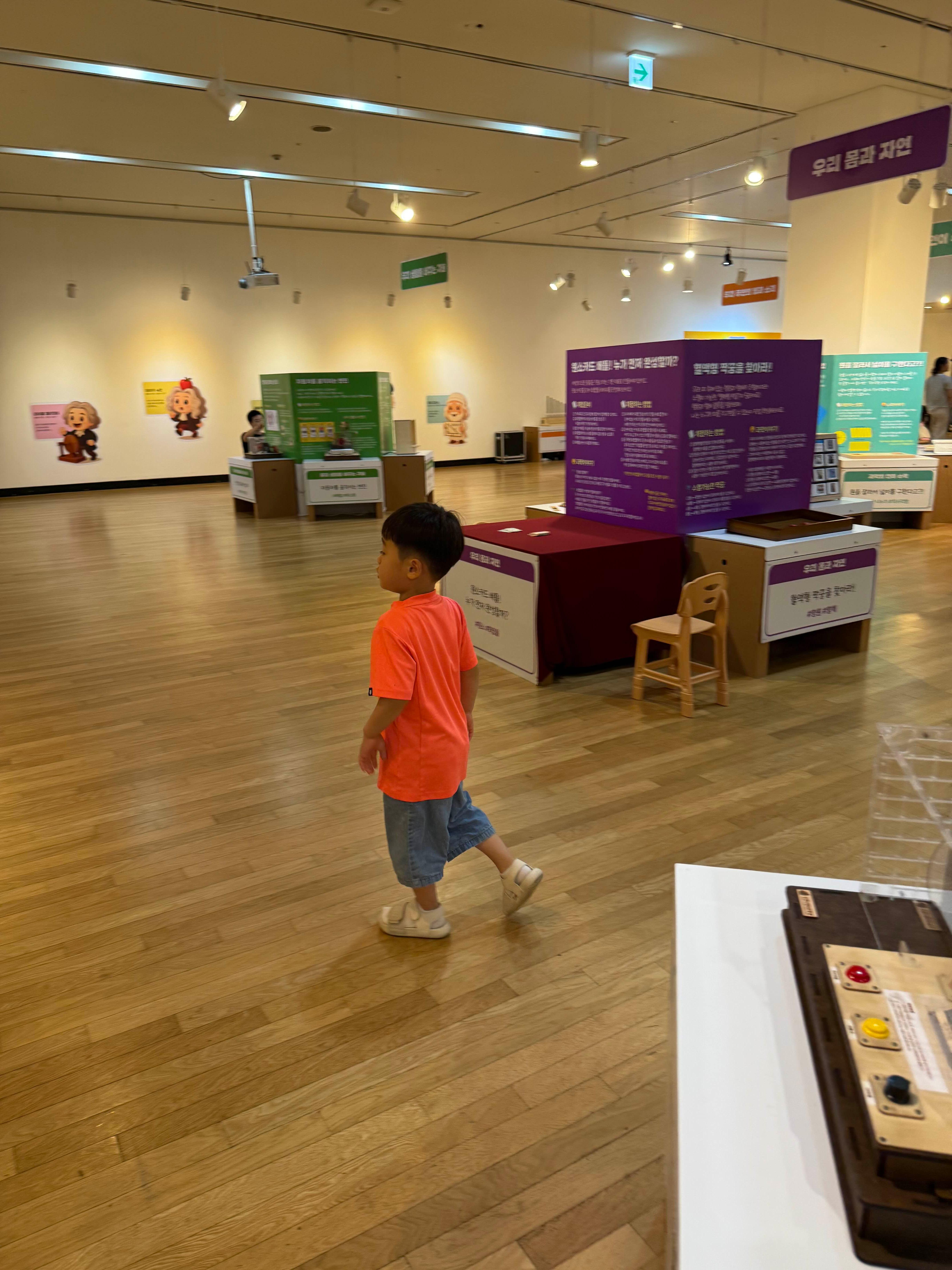 맛있게 먹고 나와서 바로 옆에도 전시를 하길래 구경했어요 쿤이가 이해하기 어려운 것들도 있었는데 체험하기 위주로만 했어요