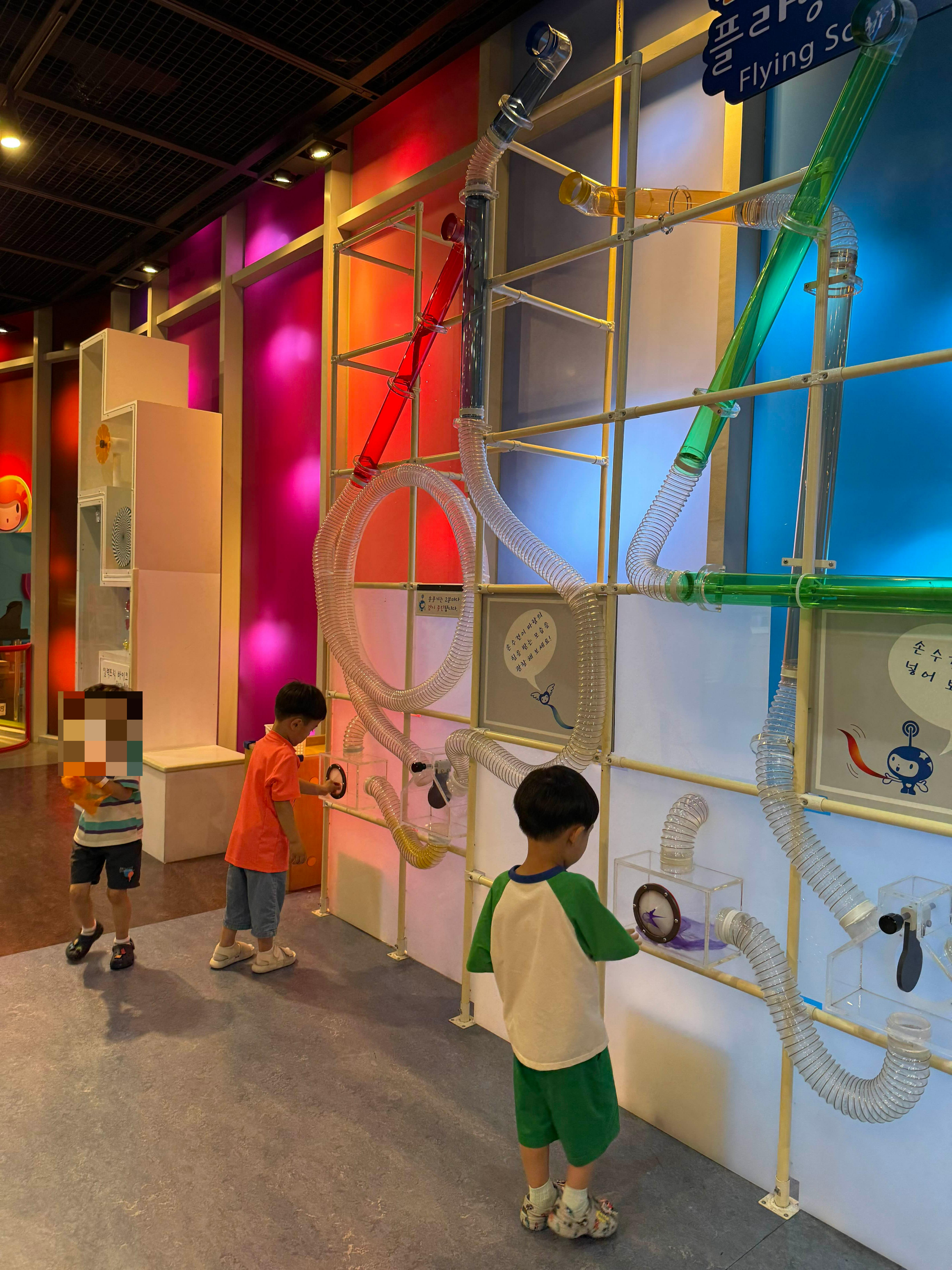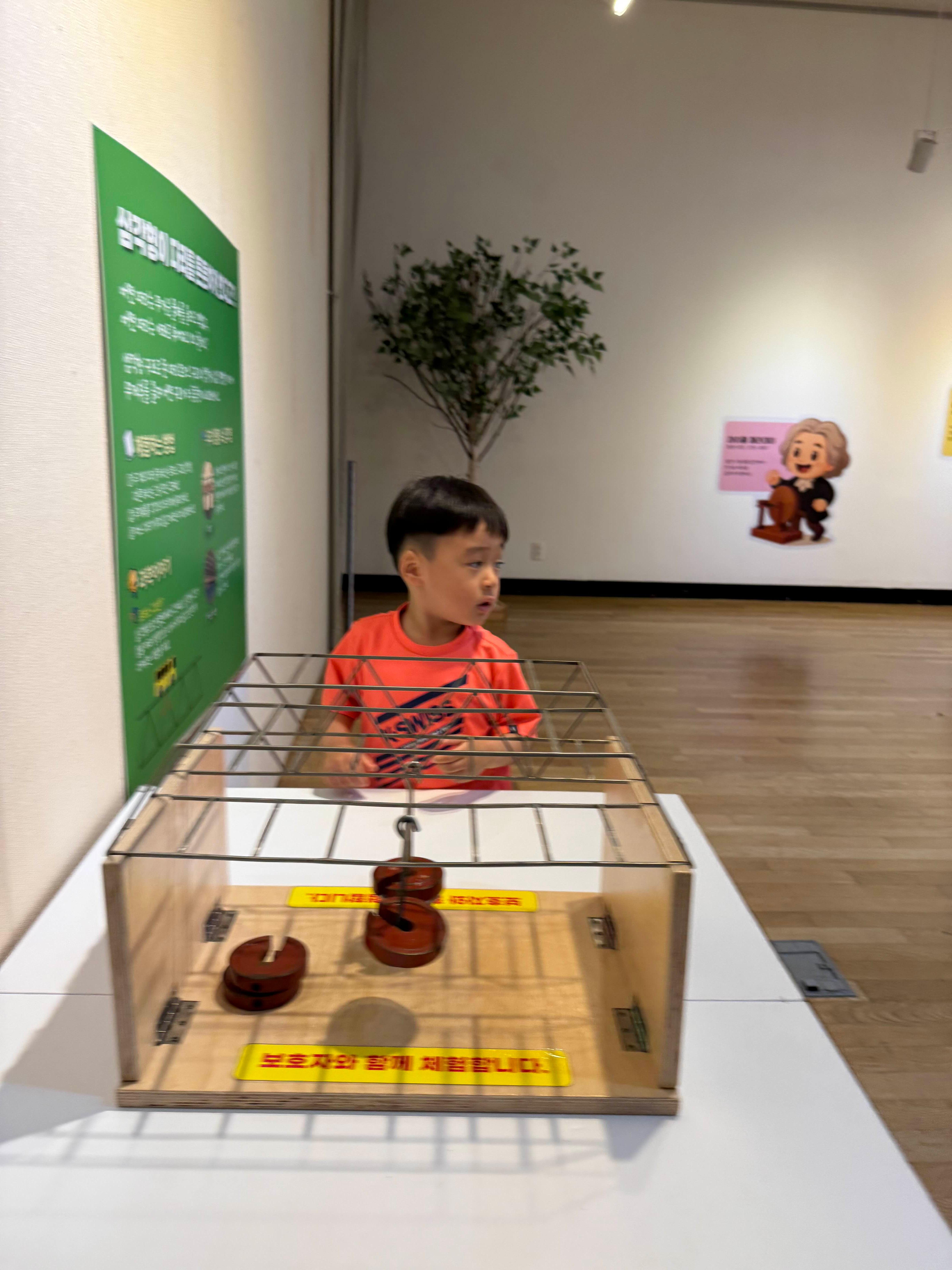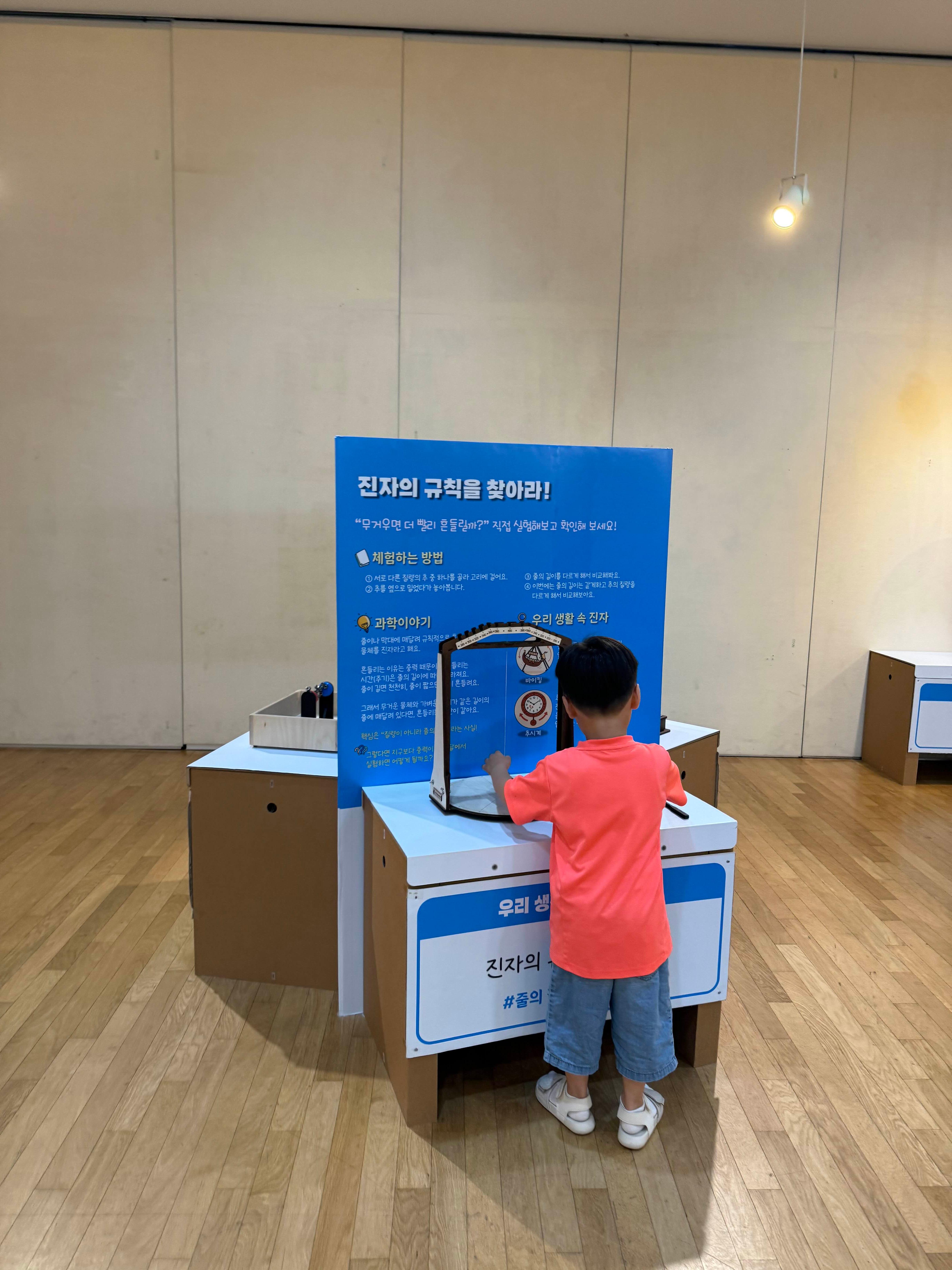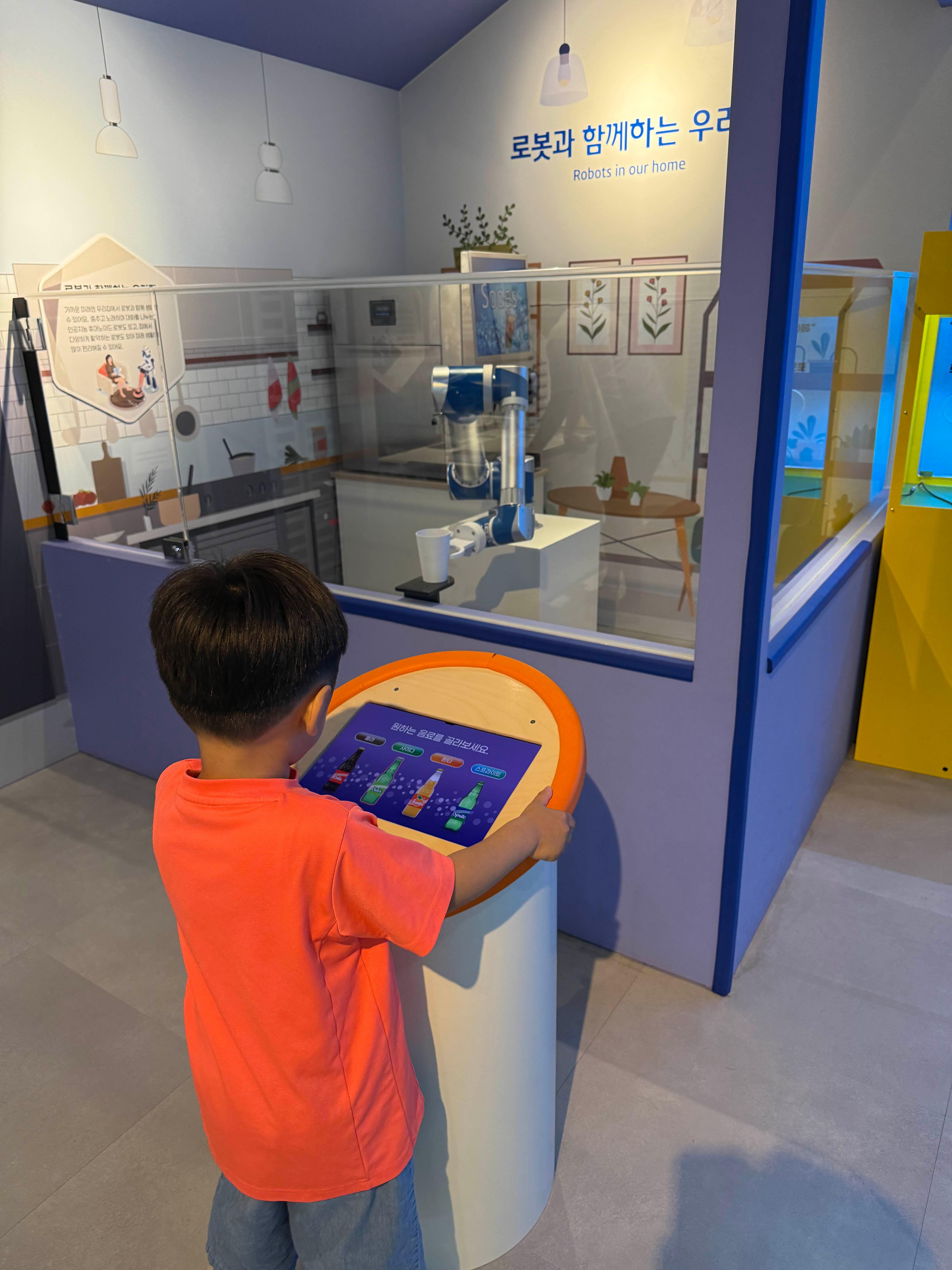 맛있게 먹고 나와서 바로 옆에도 전시를 하길래 구경했어요 쿤이가 이해하기 어려운 것들도 있었는데 체험하기 위주로만 했어요