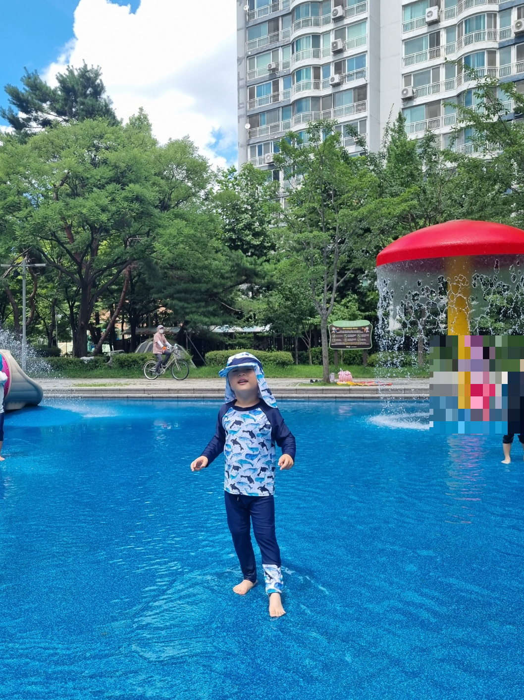 근데 쿤이는 얼굴에 물튀는걸 너무 싫어해서 친구가 물 뿌리면 와서 일르고 저랑 같이 들어가서도 "엄마 물 뿌리면 안돼" 계속 확인 받고 하더라구요 ㅋㅋㅋㅋ남자 아이인데도 참 예민해요 😅