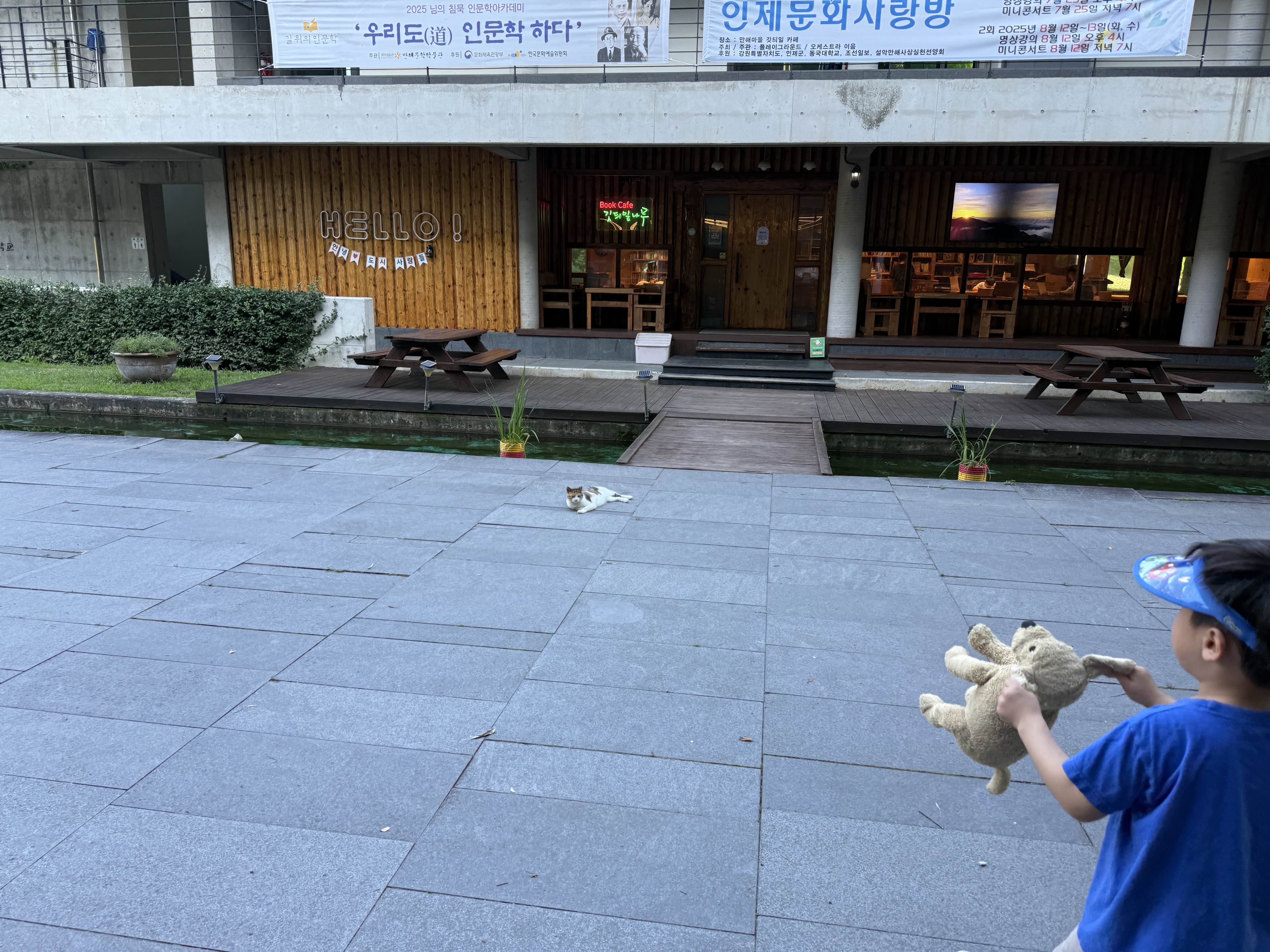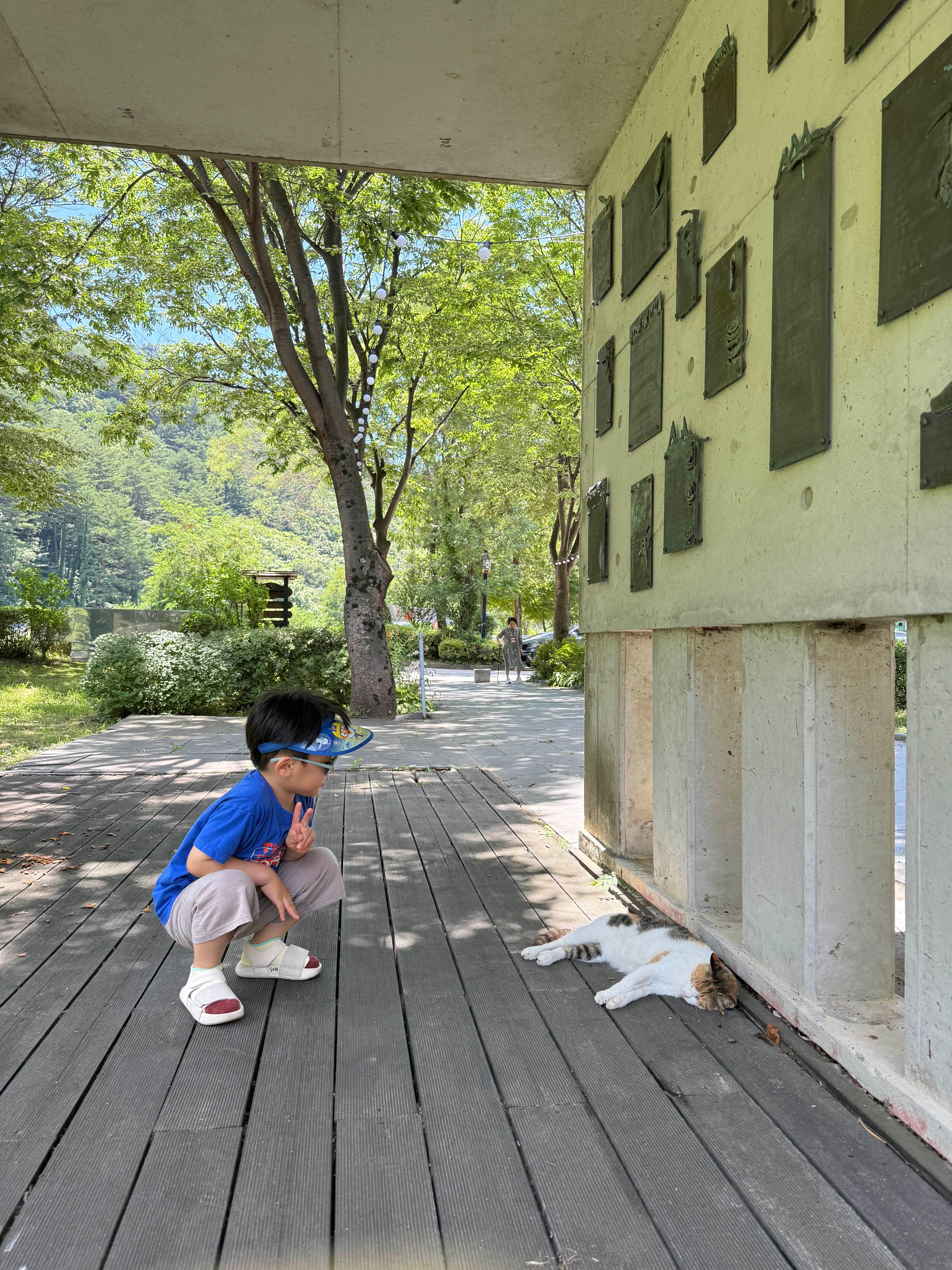 귀여원 고양이 두마리가 있더라구요 특히 하얀 고양이는 제가 키웠던 별이를 닮았는데 쿤이도 알아보고 엄마 쟤 별이 같다 그러더라구요 ㅋㅋㅋ