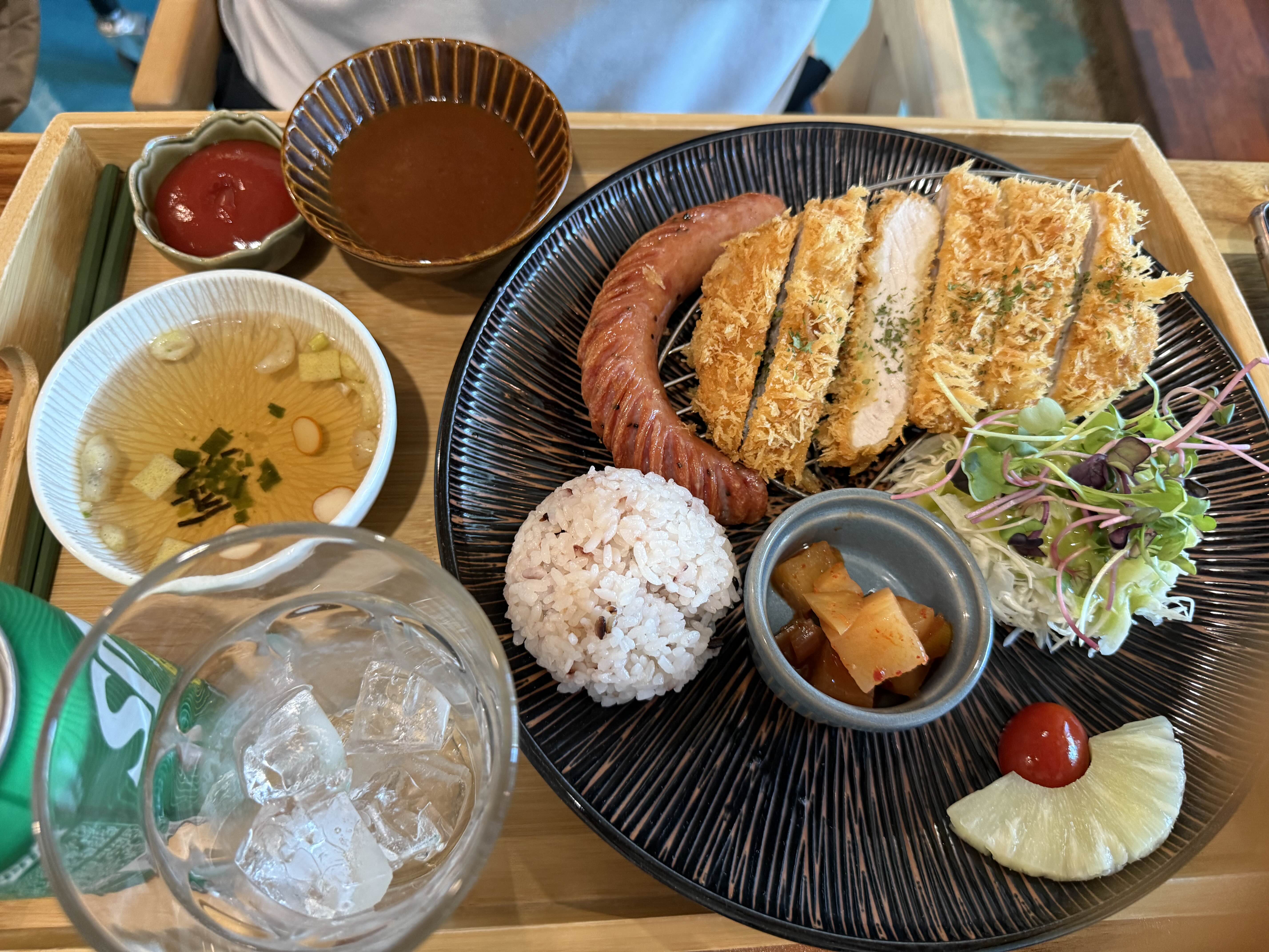 아이는 무난한 등심돈까스 남편은 소시지 사이다와 함께 나오는 돈까스 전 치즈 돈까스를 주문했어요