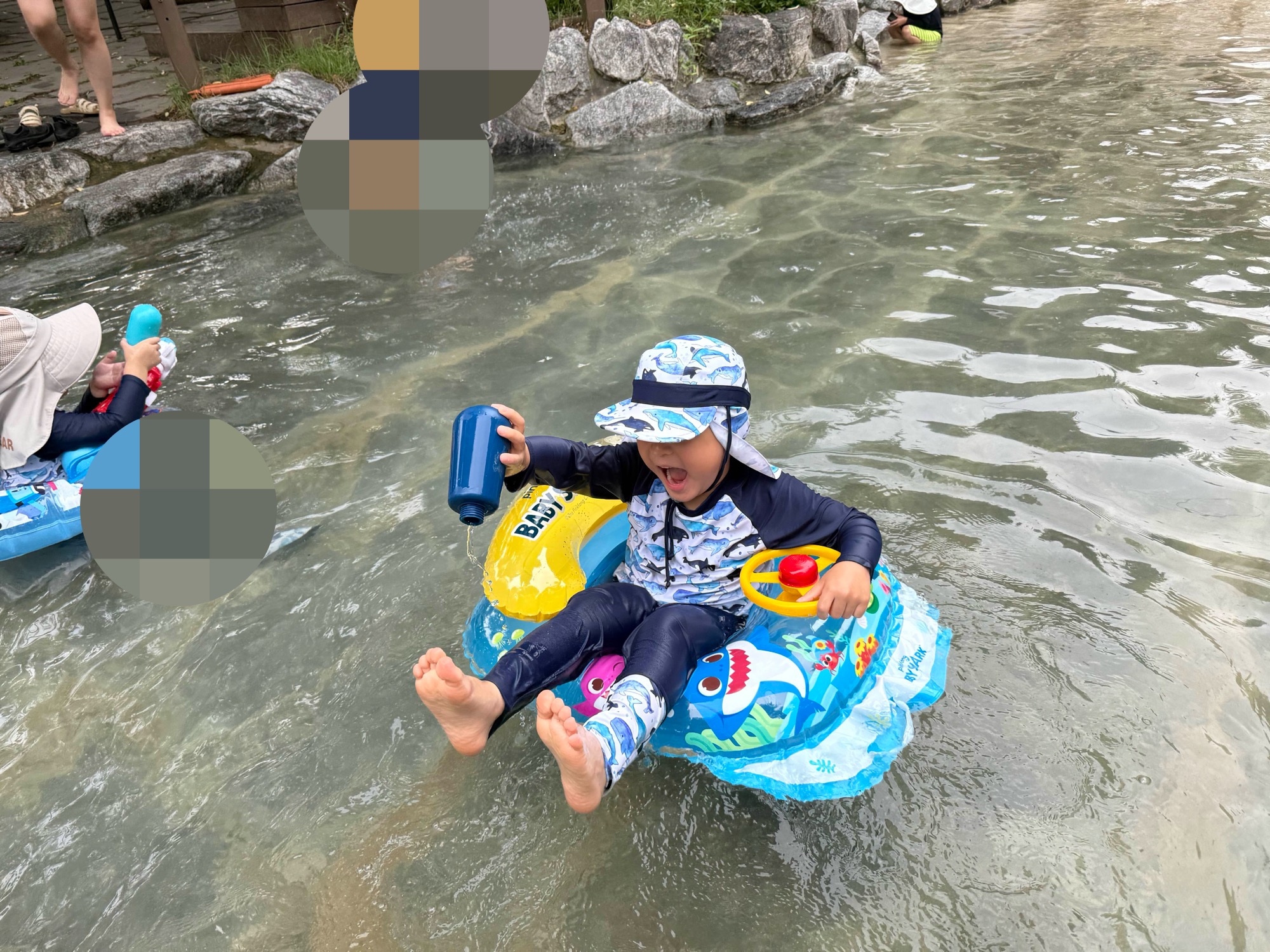 쿤이가 튜브를 타고 물 위에서 이리저리 떠다니는데 표정이 너무 신나 보여서 보는 저도 덩달아 즐거웠어요