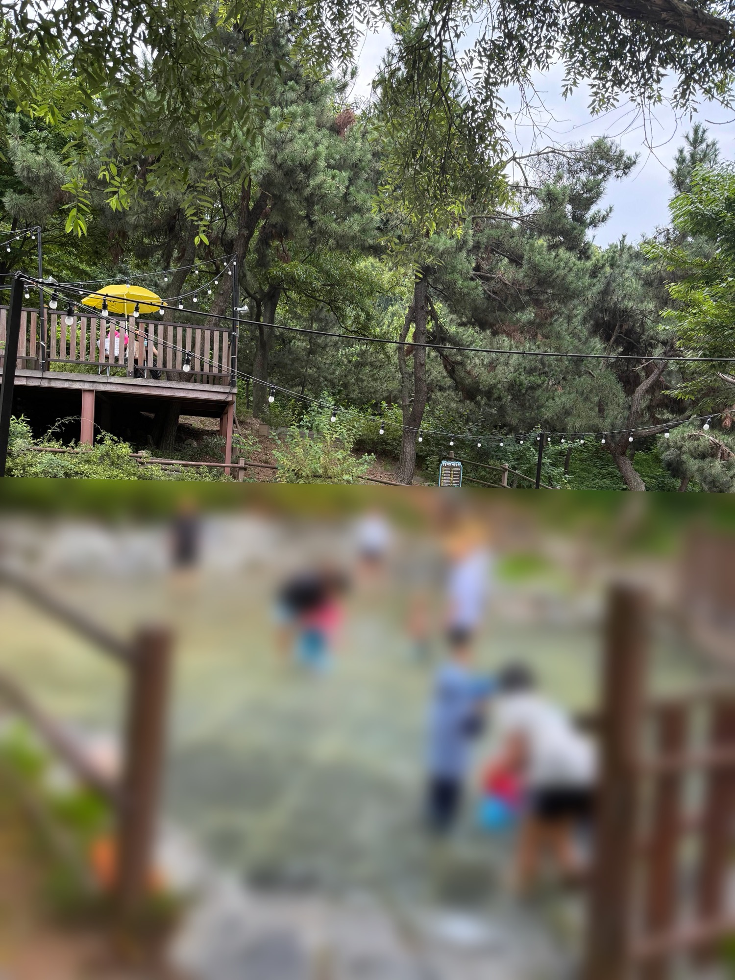 쿤이가 물놀이에 푹 빠져 있는 동안 어른들은 잠깐 앉아 시원한 바람을 맞으며 쉬기도 하고
