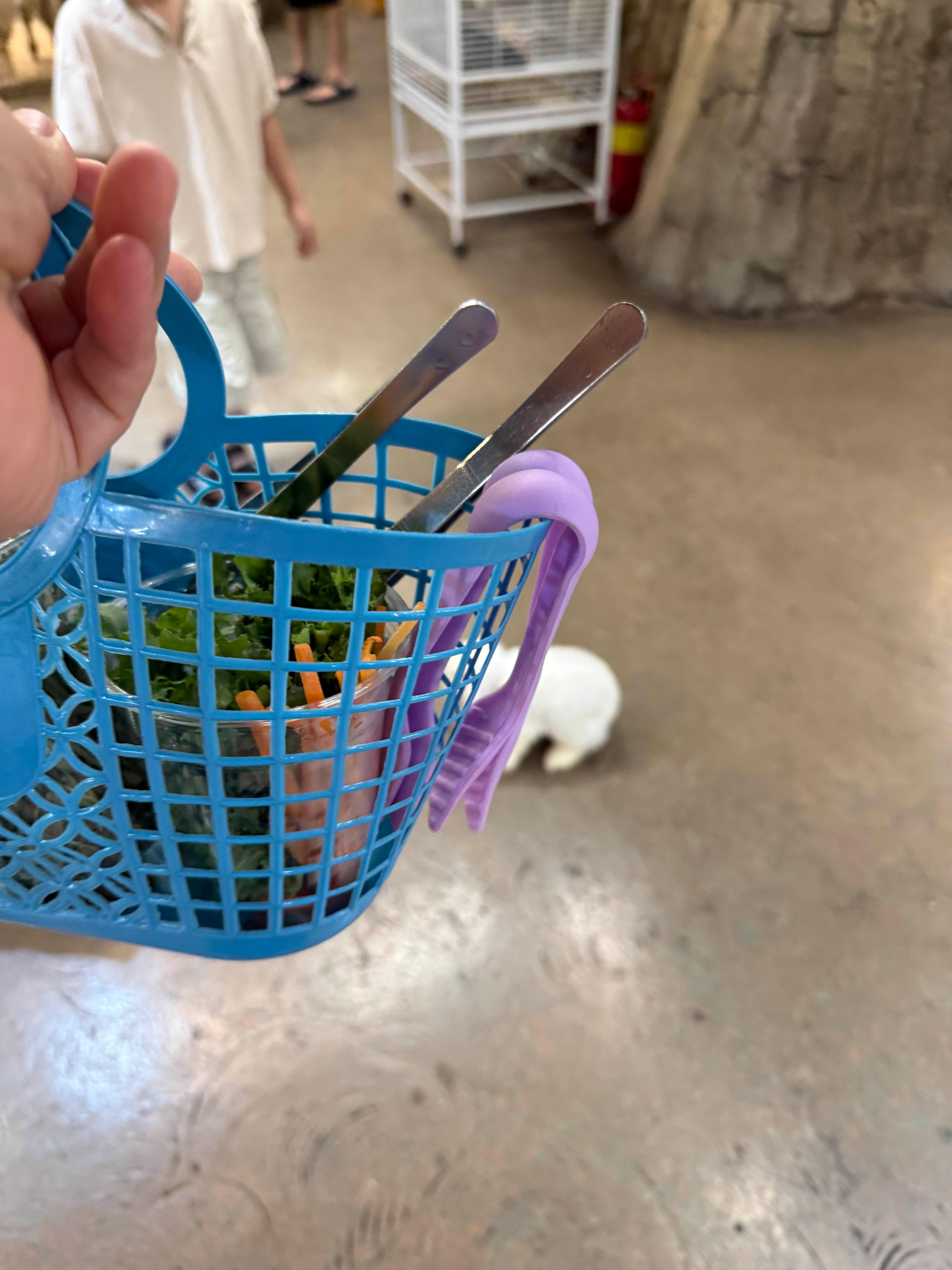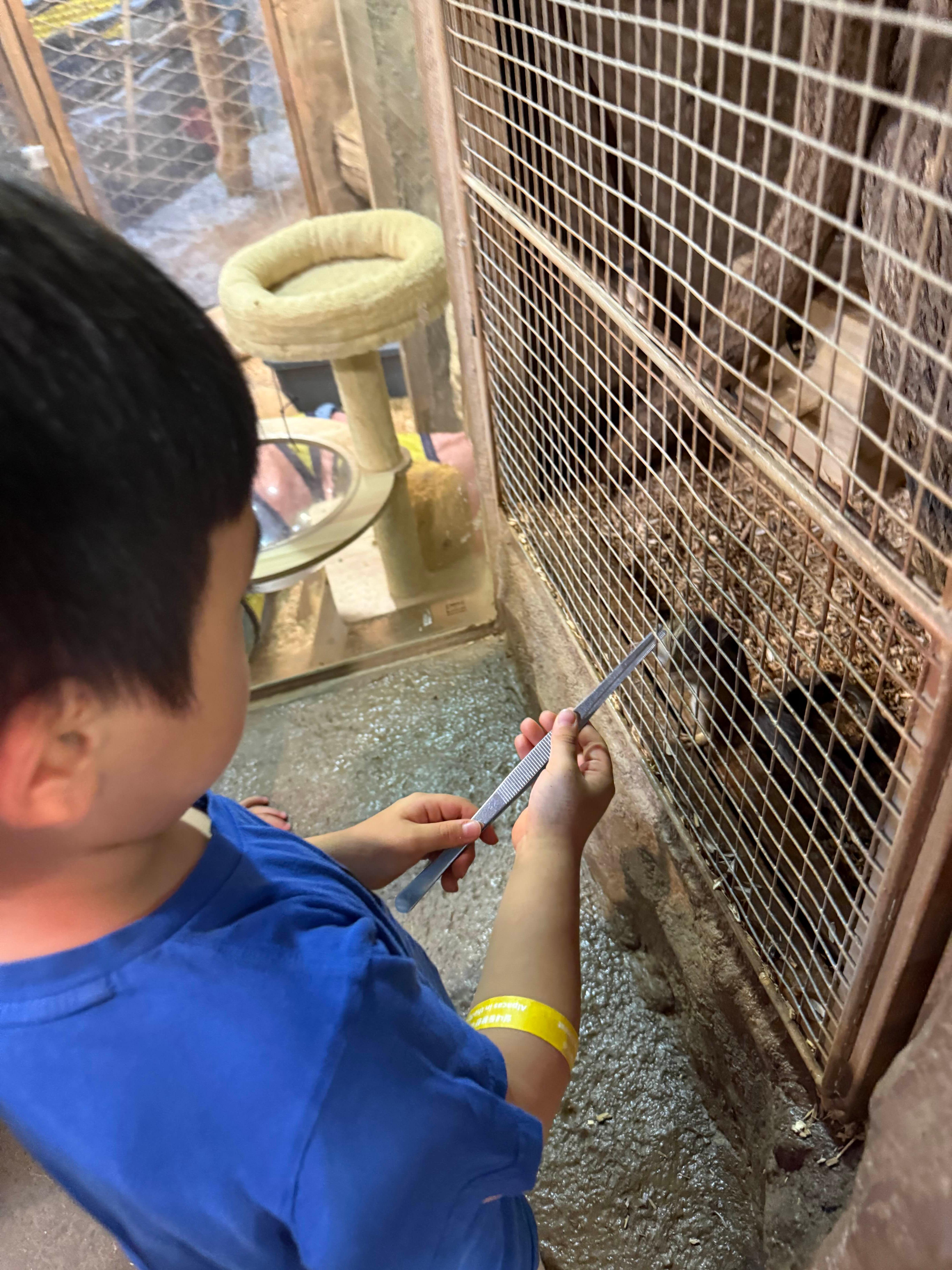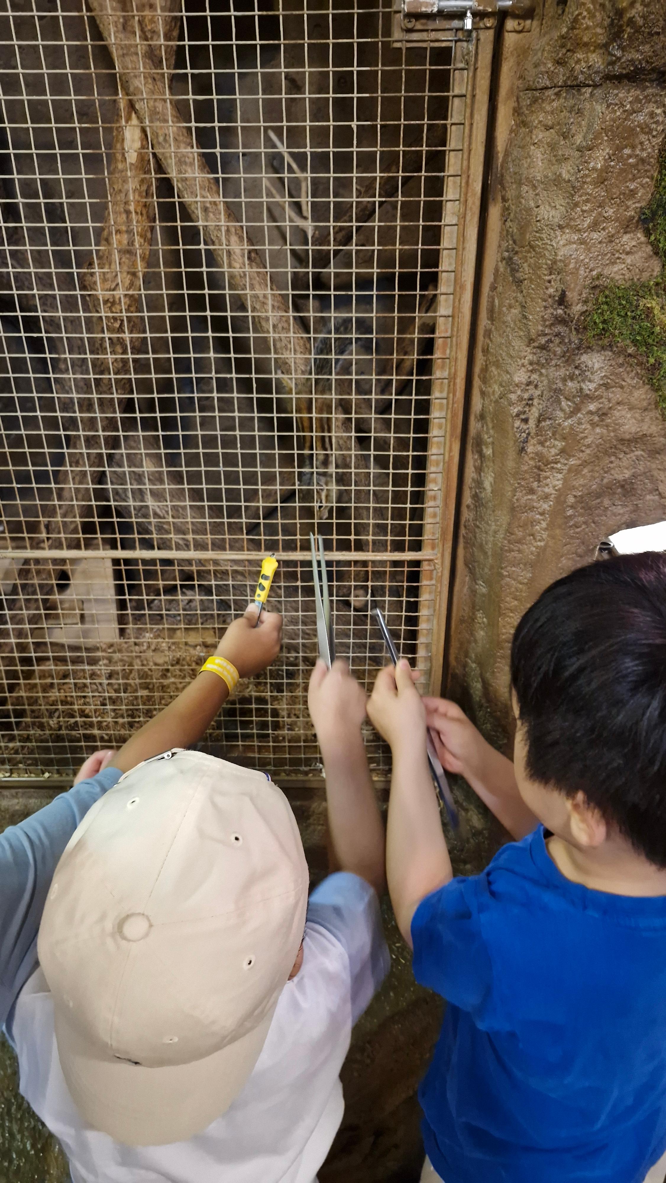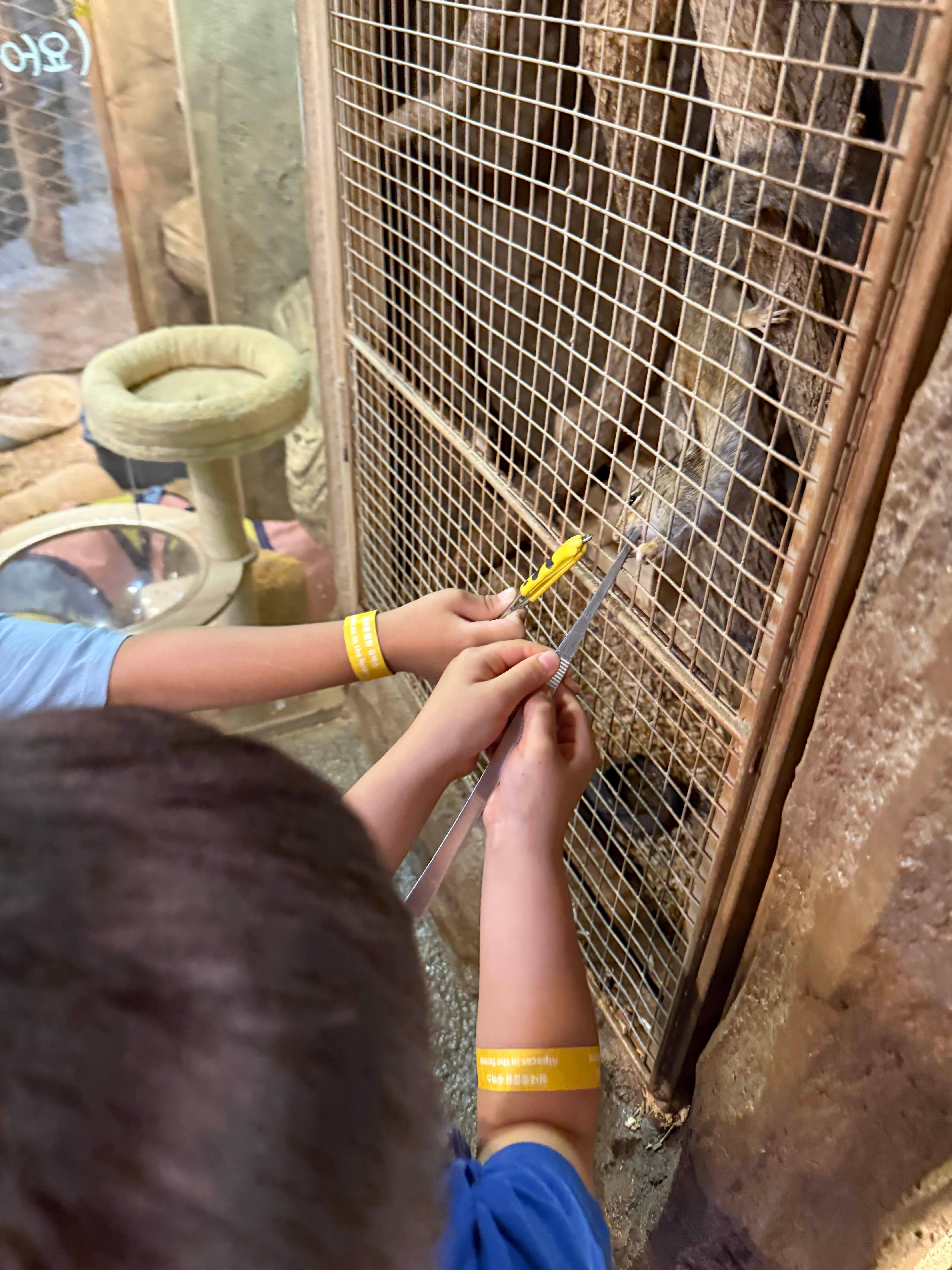 저는 집게로 먹이를 집어서 아이들에게 나눠주고, 쿤이는 직접 당근이나 풀을 건네주며 동물들과 교감했는데