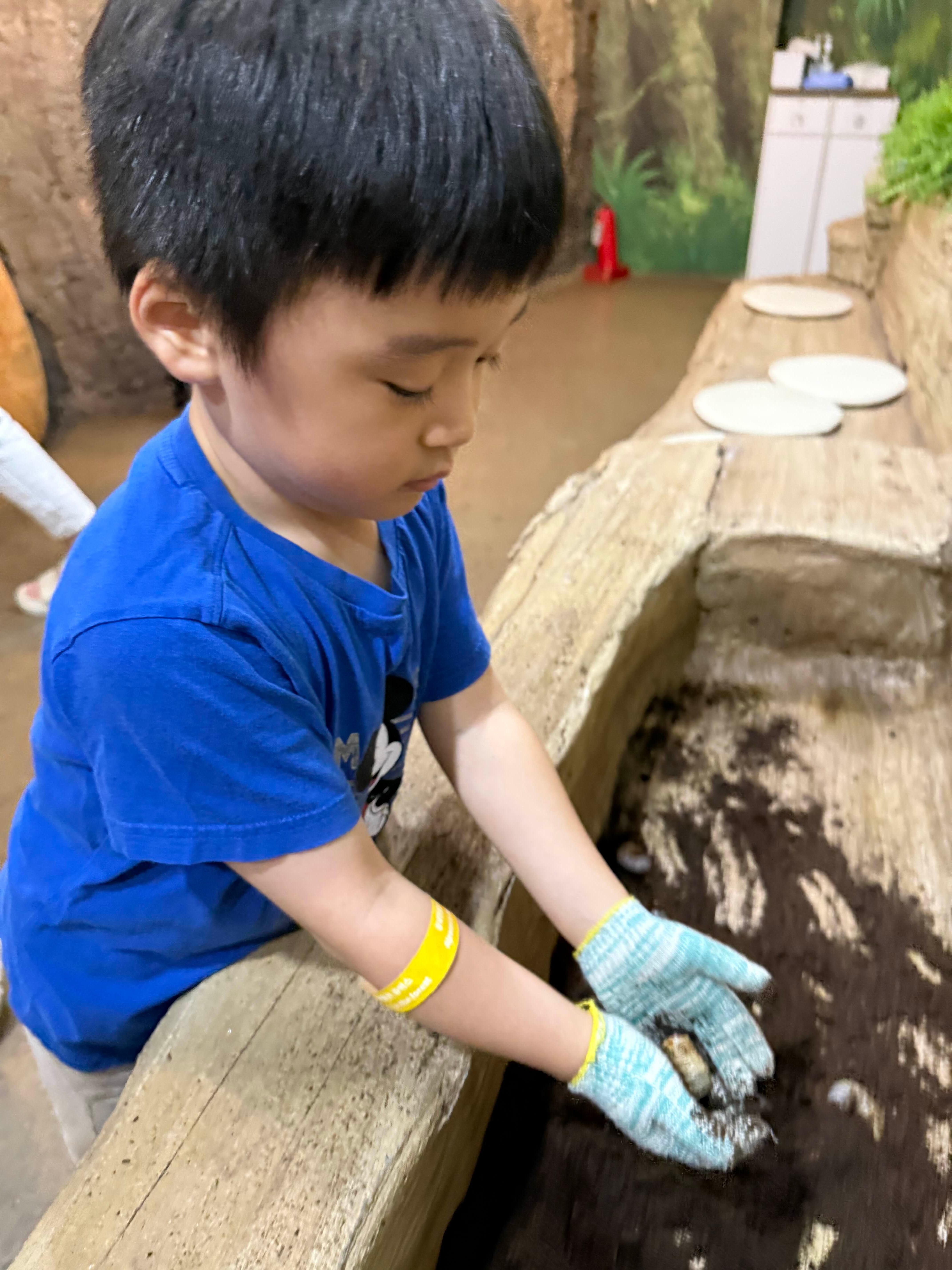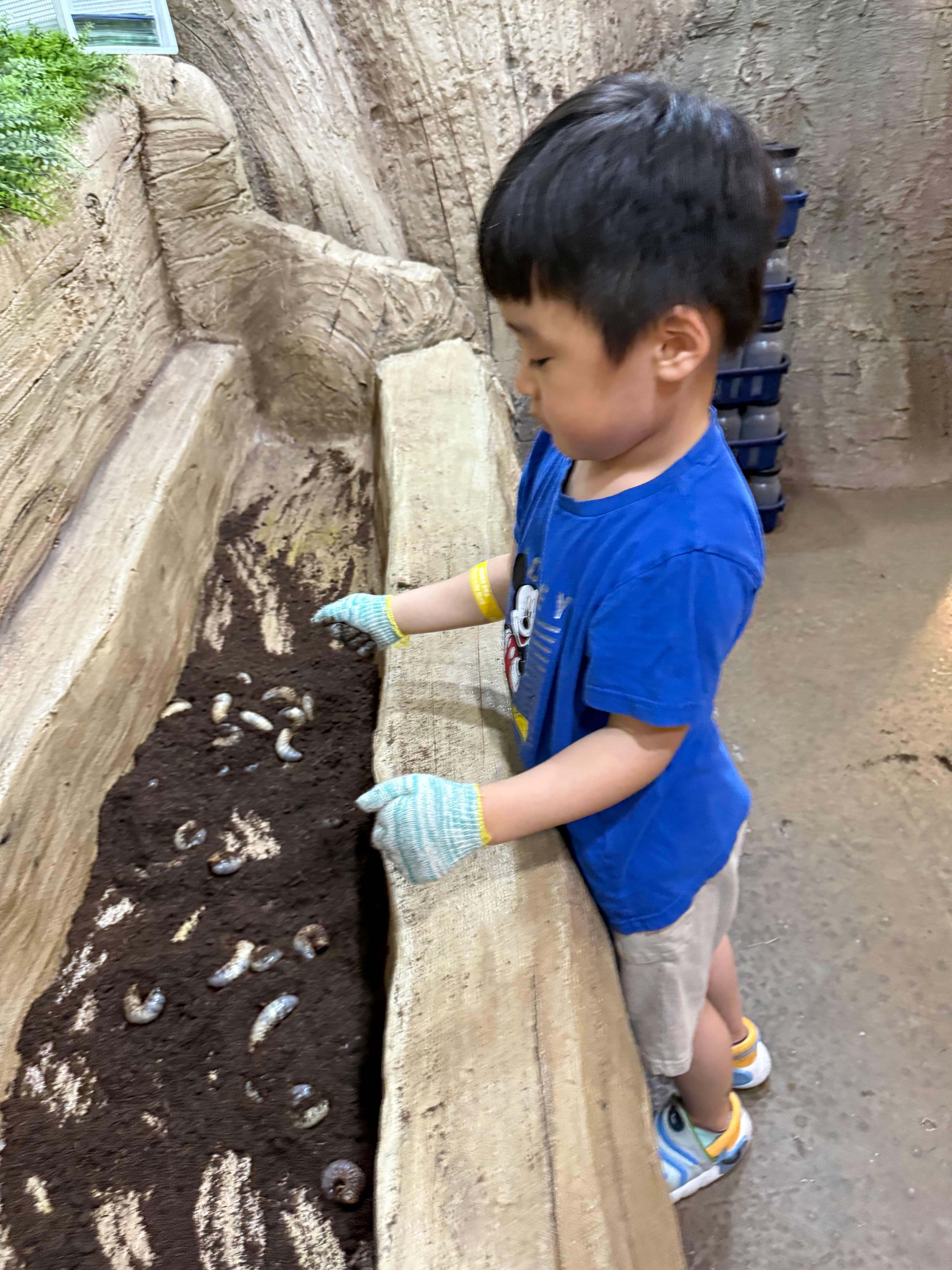 장갑을 끼고 굼벵이를 만져보거나 흙놀이를 할 수 있어 아이가 오랫동안 머물렀어요