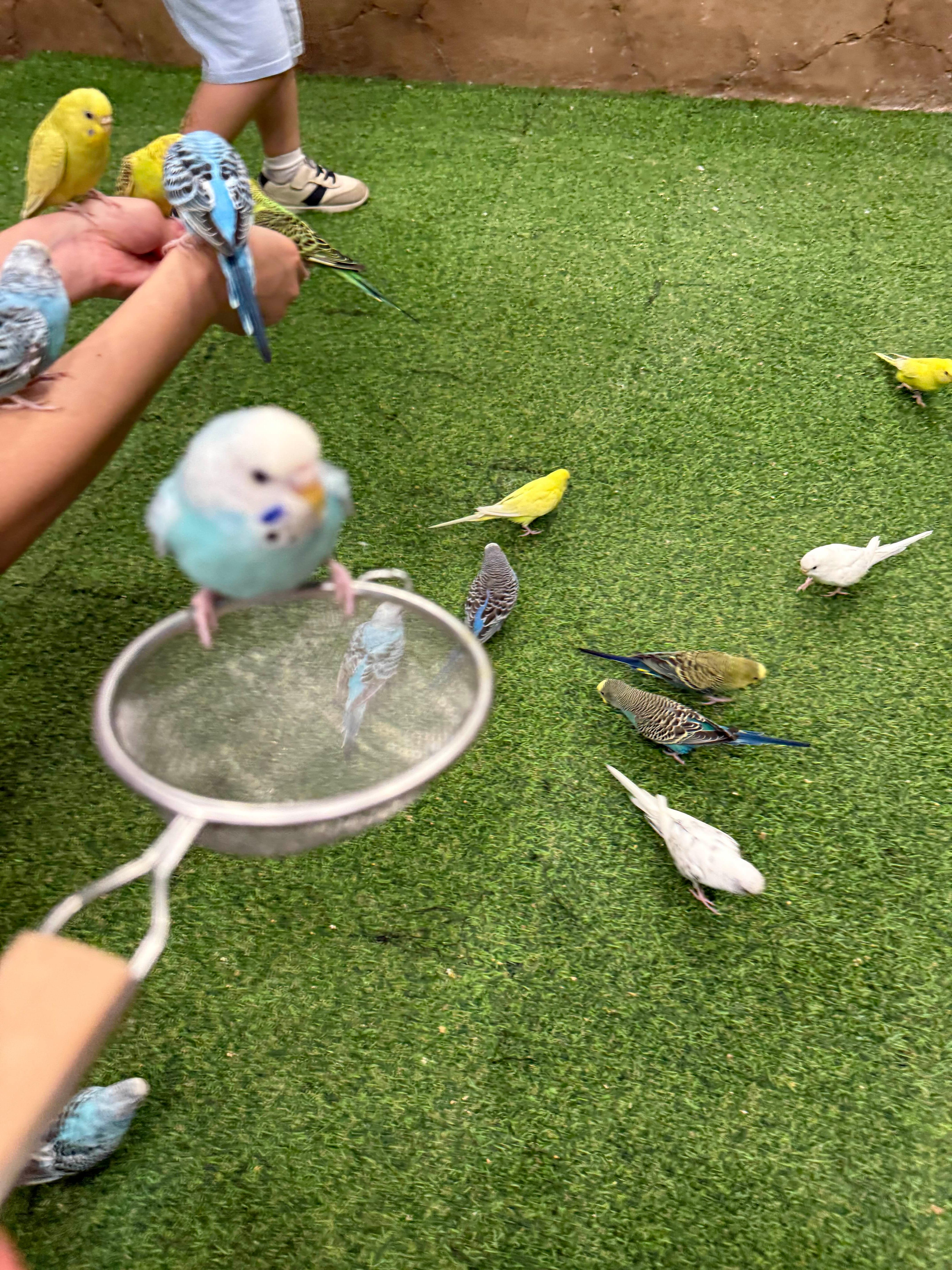 새 모이 주기 체험을 할 땐, 손바닥에 먹이를 올려두자마자 작은 새들이 우르르 몰려와 신기함 그 자체였어요