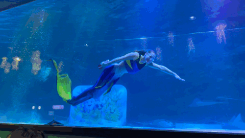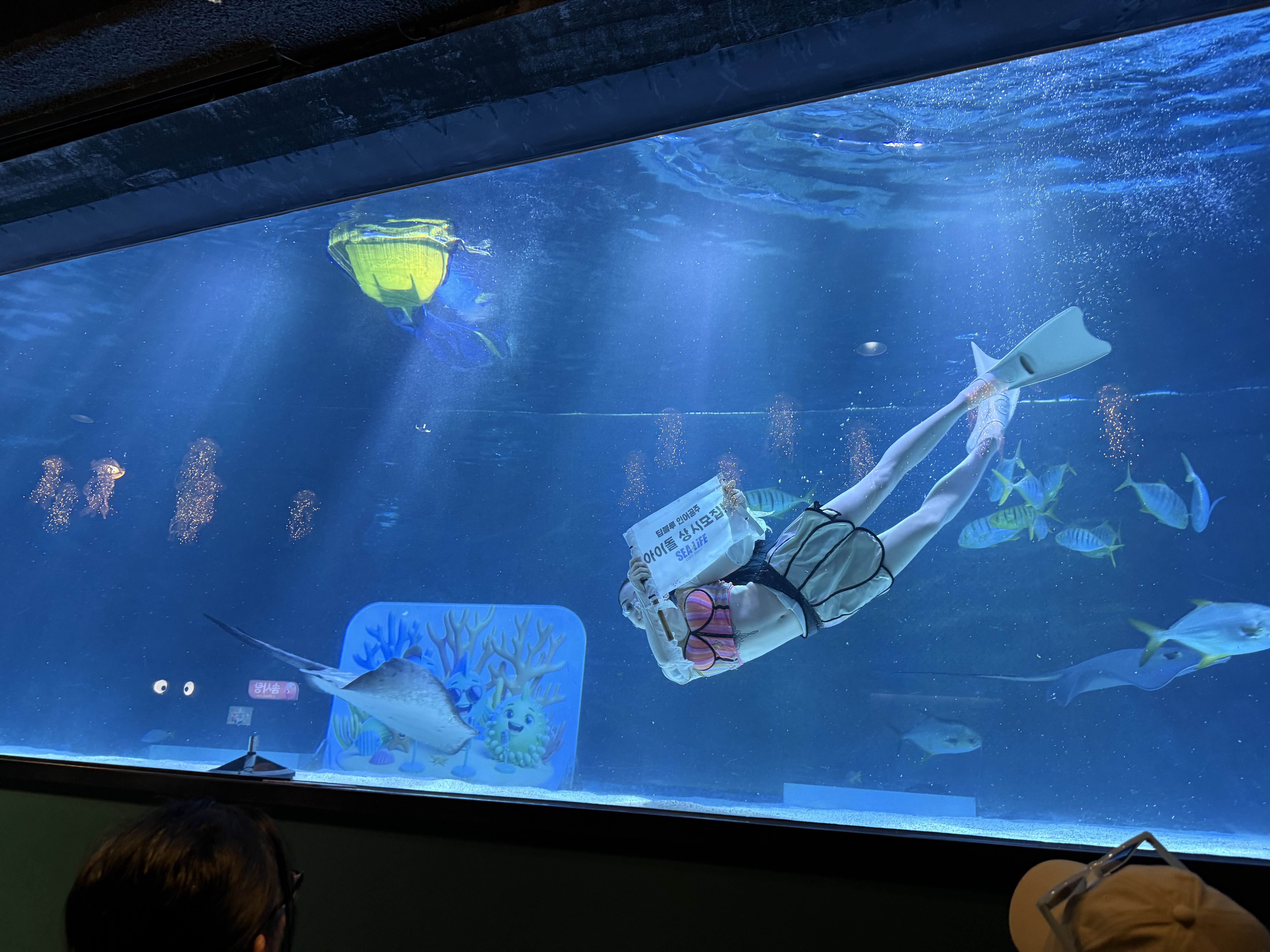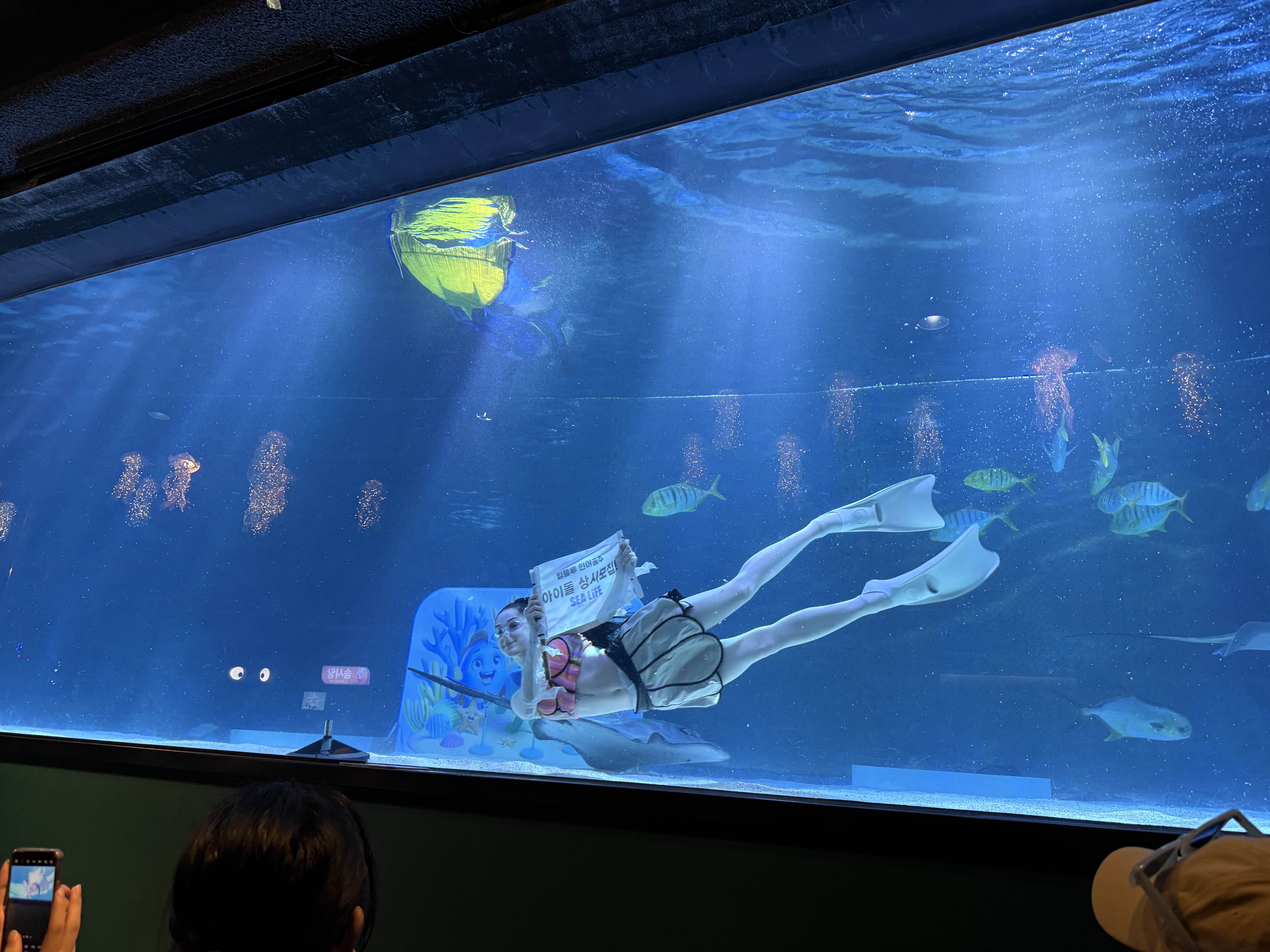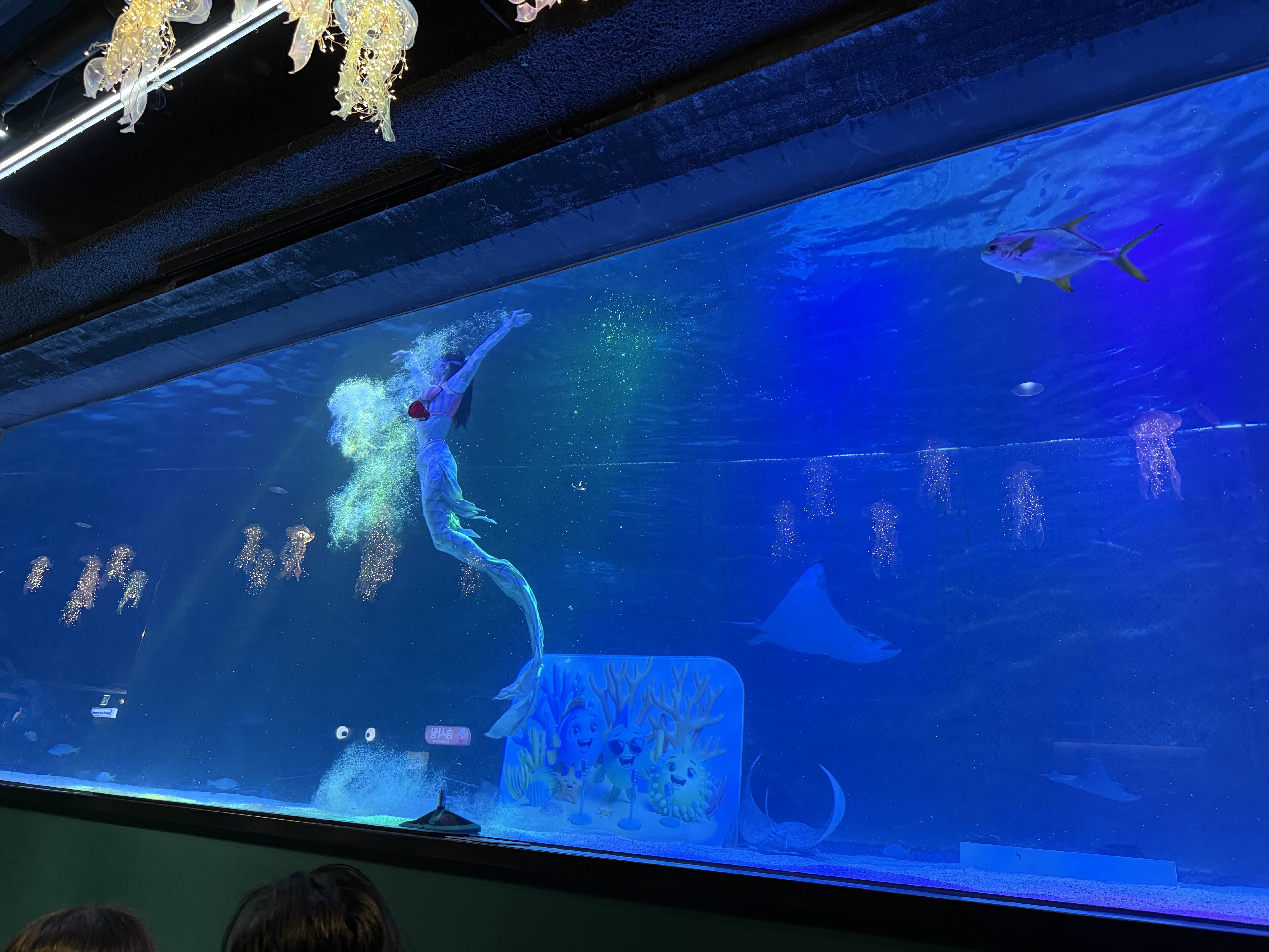 정각이 되자 기다리던 인어공주쇼가 시작된다고 해서